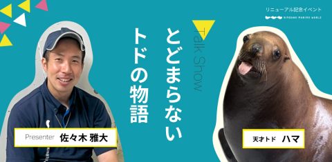 世界中のだれも知らなかった彼らの能力に気づいたのは、実は偶然だった!?トドチームのリーダーである佐々木は、ハマの成長を一番近くで見続けた自称「ハマの付き人」。彼が信じるトドの無限の可能性、そして探求する心の素晴らしさを、佐々木がライブでお話しします。
