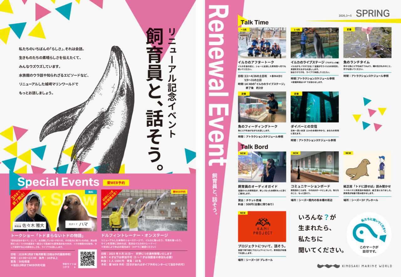 リニューアルを記念した「飼育員と、話そう!」の、春プログラムが3月よりスタートします。予約必須の限定のイベントから、気軽に参加できるプログラムまでご用意しました。