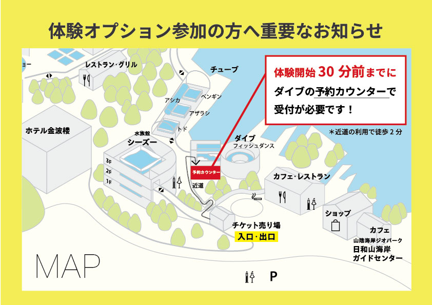 - 予約 開催日の1週間前からWeb予約できます(当日空きがあれば、ダイブ予約センターで当日予約も可能)
