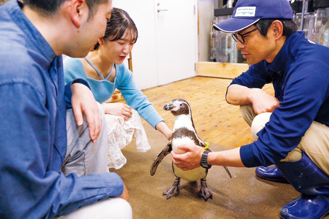 普段は入ることのできない水族館のウラ側をおしゃべりな飼育員がご案内します。最後はペンギンにさわってみよう!