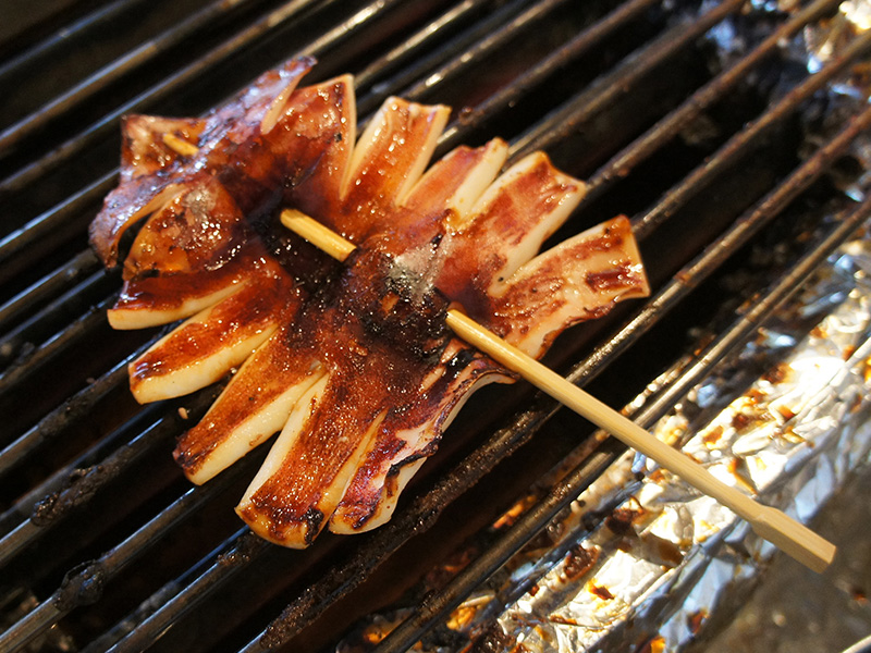 イカ焼きやサザエのつぼ焼きなど、テイクアウトフードやドリンクを提供しています。