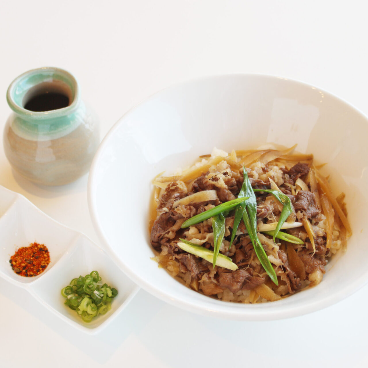 特選素材の地元産「但馬牛」を使用し、店内でじっくり炊き上げました。食べ方いろいろ、ひつまぶし風でご用意しています。